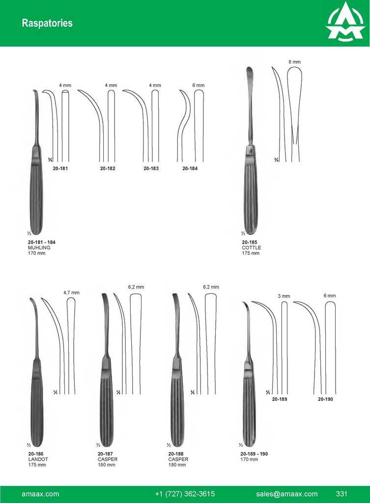 20-143 HALLE stumfp/blunt 180 mm 3,3 mm 20-144 FREER stumfp/blunt 190 mm 4 mm 20-145 FREER stumfp/sharp 190 mm 4 mm 20-146 SEWALL stumfp/blunt 190 mm 5,9 mm 20-147 – 149 PAULSEN 205 mm 20-147 20-148 20-149 20-150 – 151 PAULSEN 205 mm 20-150 20-151 2,5 mm 3,5 mm 4,5 mm 5,0mm 8,0mm INSTRUMENTS R 331