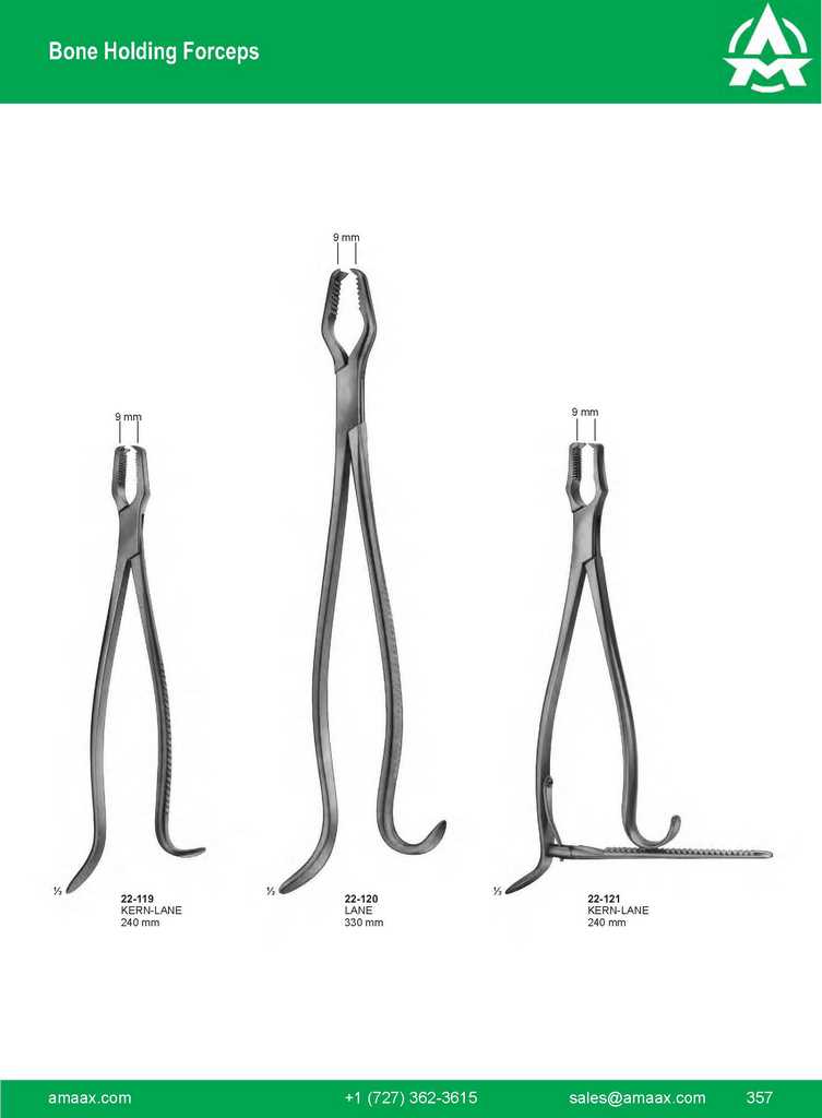 22-106 Patella forceps 185 mm 22-107 Forceps with ratchet fixation 140 mm 22-108 Forceps with thread fixation 170 mm 22-109 Forceps with thread fixation 235 mm 22-110 DINGMANN 185 mm INSTRUMENTS R 357