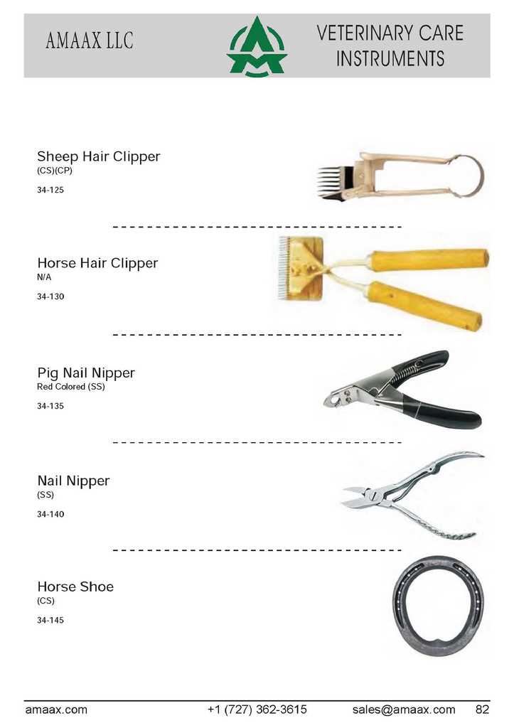 Sheep Hair Clipper (CS)(CP) 34-125 Horse Hair Clipper N/A 34-130 Pig Nail Nipper Red Colored (SS) 34-135 Nail Nipper (SS) 34-140 Horse Shoe (CS) 34-145